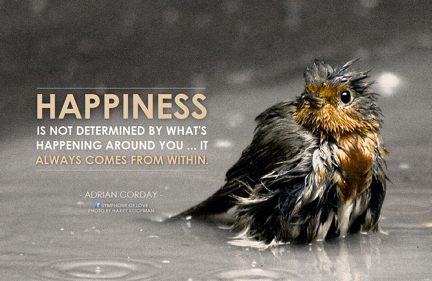 Happiness is not about endless blissfulness, rainbows & butterflies. Happiness actually feels sadness, frustration, elation and every other emotion.Consider the saints that work in something like hospice care, or a cancer hospital, or child services. They experience sadness at levels most of us mere mortals can’t comprehend, and yet those that I have met are often some of the happiest people I have encountered. Happiness is less an emotion and more a state of mind; more specifically, it is a state of awareness. And this is key:Happiness is what you bring to things/people/life/circumstances; not what you take away from them.Happiness doesn’t preclude the difficult, the sad or the negative. It is what allows those other things to be carried away on the breeze. Happiness witnesses emotions and experiences, and then moves on to whatever is next.Like the stock market, you can’t monitor your happiness by the minute – I’m happy, I’m not happy, I’m happy, I’m not happy, I’m happy, I’m not happy – man, that would drive anyone insane! Instead, take a long-term view of happiness.Check in occasionally and ask the question: is your overall happiness climbing or falling? How would you know? Try these check-in questions: